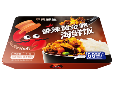 甲殼鮮生海鮮飯包裝材料是由食品級鋁箔制作而成可以在微波中加熱方便快捷,米飯是由無公害大米制作而成香甜可口、老少皆宜,菜肴是由野生的海鮮和天然綠色蔬菜“零”添加劑秘制而成香味四溢、其味無窮,輕輕松松微波加熱8分鐘即可美餐。